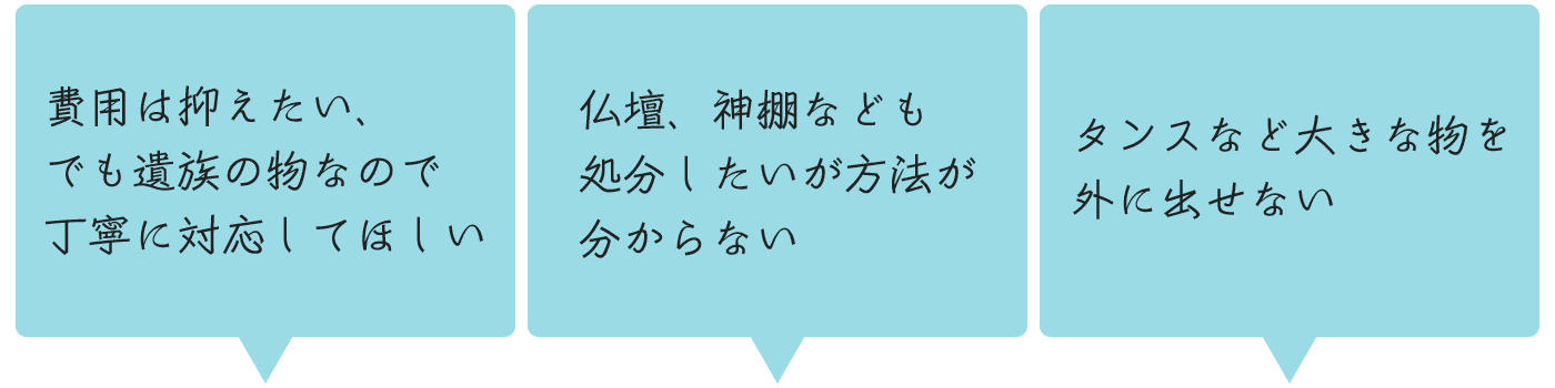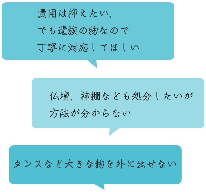 遺品整理のご相談などはお電話でお気軽に